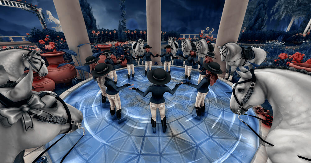 Our club activities are on monday, wednesday, thursday, friday and sunday, with monday, wednesday and sunday being our dressage days. They start at 20:00 / 8:00 PM at Steve's, we gather on our club horse [Dapple Lipizzaner] and start with whatever the plan for the day is! Activities are mandatory (once a week), as they help with getting to know the club and being active, which are requirements to be in Ocean Pearls.