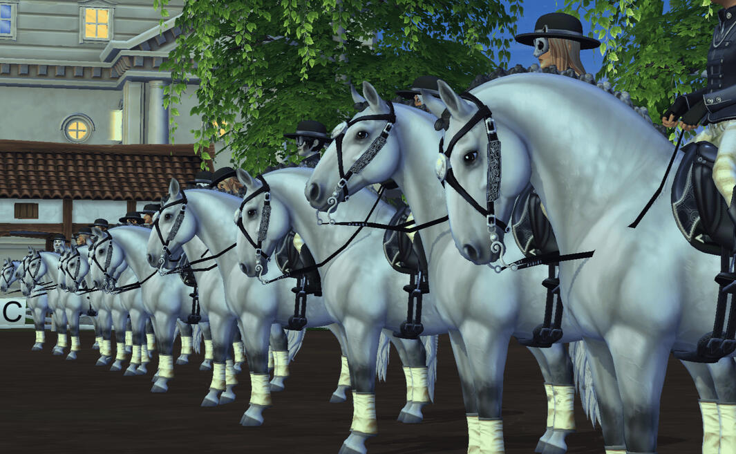 Our club activities are on monday, wednesday, thursday, friday and sunday, with monday, wednesday and sunday being our dressage days. They start at 20:00 / 8:00 PM at Steve's, we gather on our club horse [Dapple Lipizzaner] and start with whatever the plan for the day is! Activities are mandatory (once a week), as they help with getting to know the club and being active, which are requirements to be in Ocean Pearls.